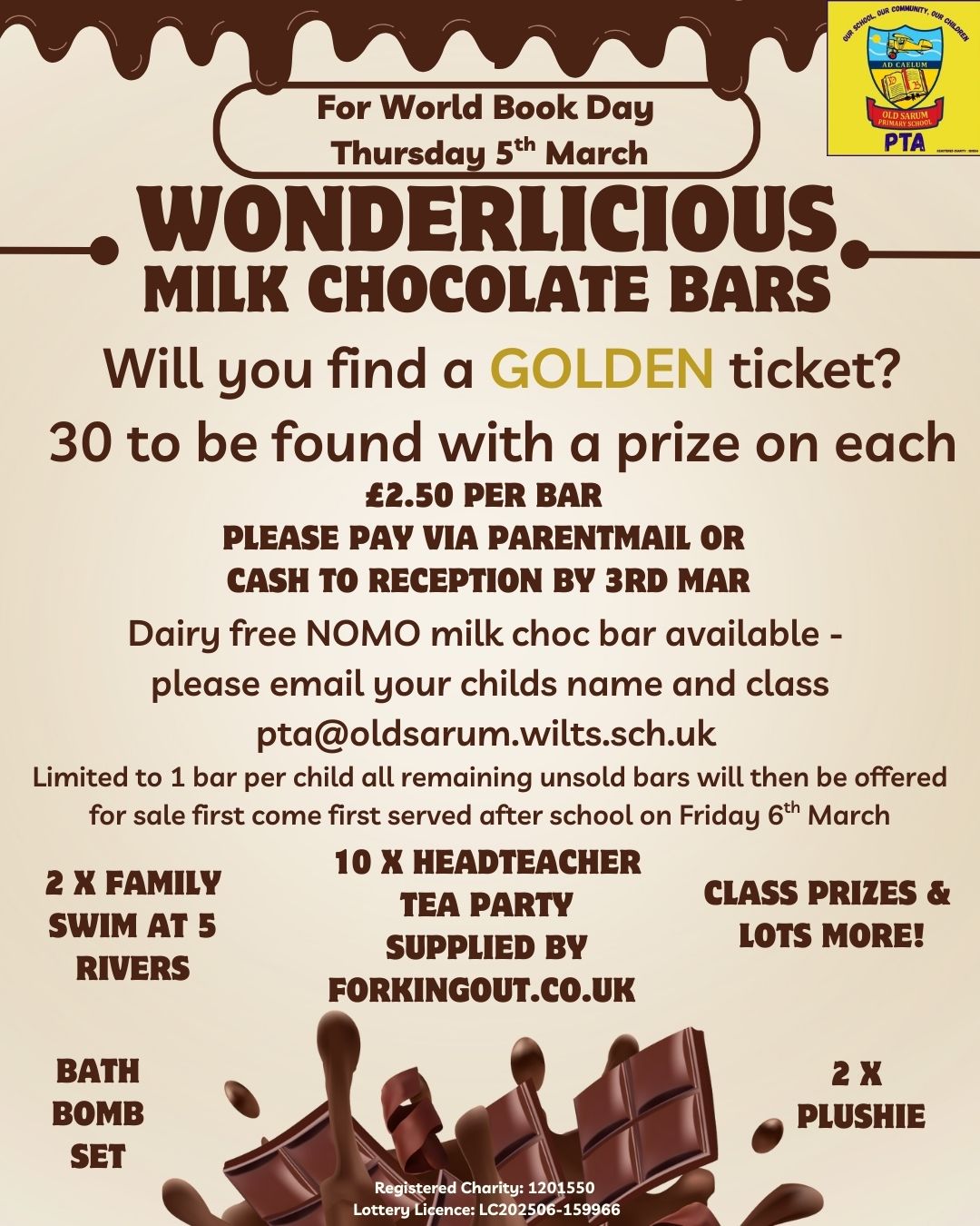 We have also been supported by parent donations, Aldi, Tesco, Five Rivers Leisure Centre, Forkingout Catering, Waitrose, Wickes, Aroma Avenue, Mrs Levoir's academy, Slinky Fox, Boscombe Down Aviation Centre, Salisbury Football Club, Earl of Normanton pub, Coach and Horses Pub and Forkingout Ltd. Thank you to all the local businesses and community for supporting our charity.